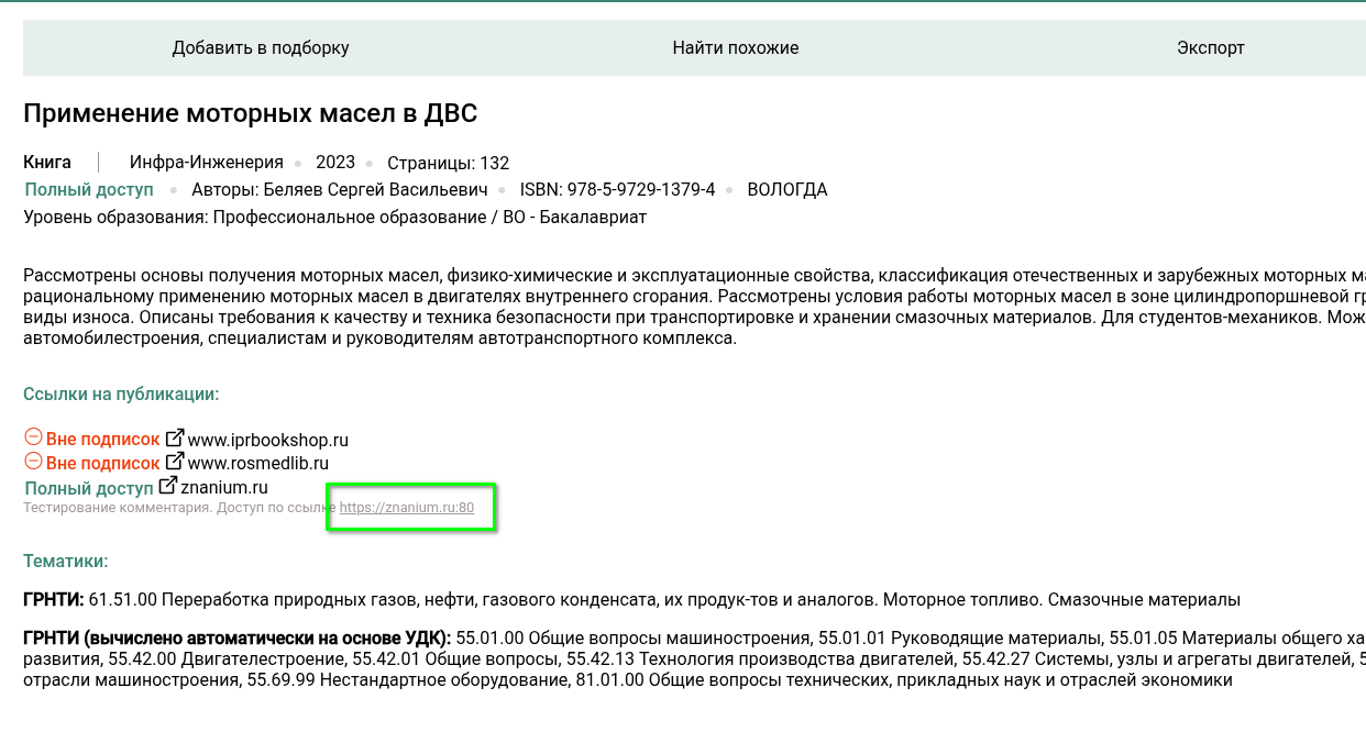 Тематические коллекции, создаваемые администраторами и библиотекарями, содержат комментарии со ссылками на инструкции по получению доступа к полной версии документа. Теперь любая ссылка в комментарии к коллекции является кликабельной и открывается в новом окне.