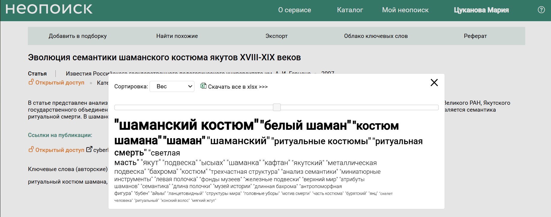 Углубляться в тему стало проще. Все ключевые слова в облаке теперь стали активными, кликабельными ссылками. При нажатии на интересующий вас термин он подсвечивается, и в новой вкладке браузера мгновенно формируется поисковая выдача по этому запросу.